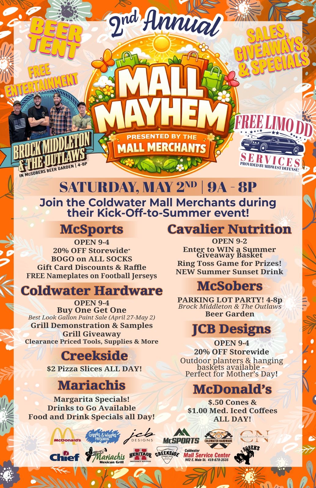 Join the Coldwater Mall Merchants during their Kick-Off-to-Summer event!! Saturday, May 2nd from 9am to 8pm.